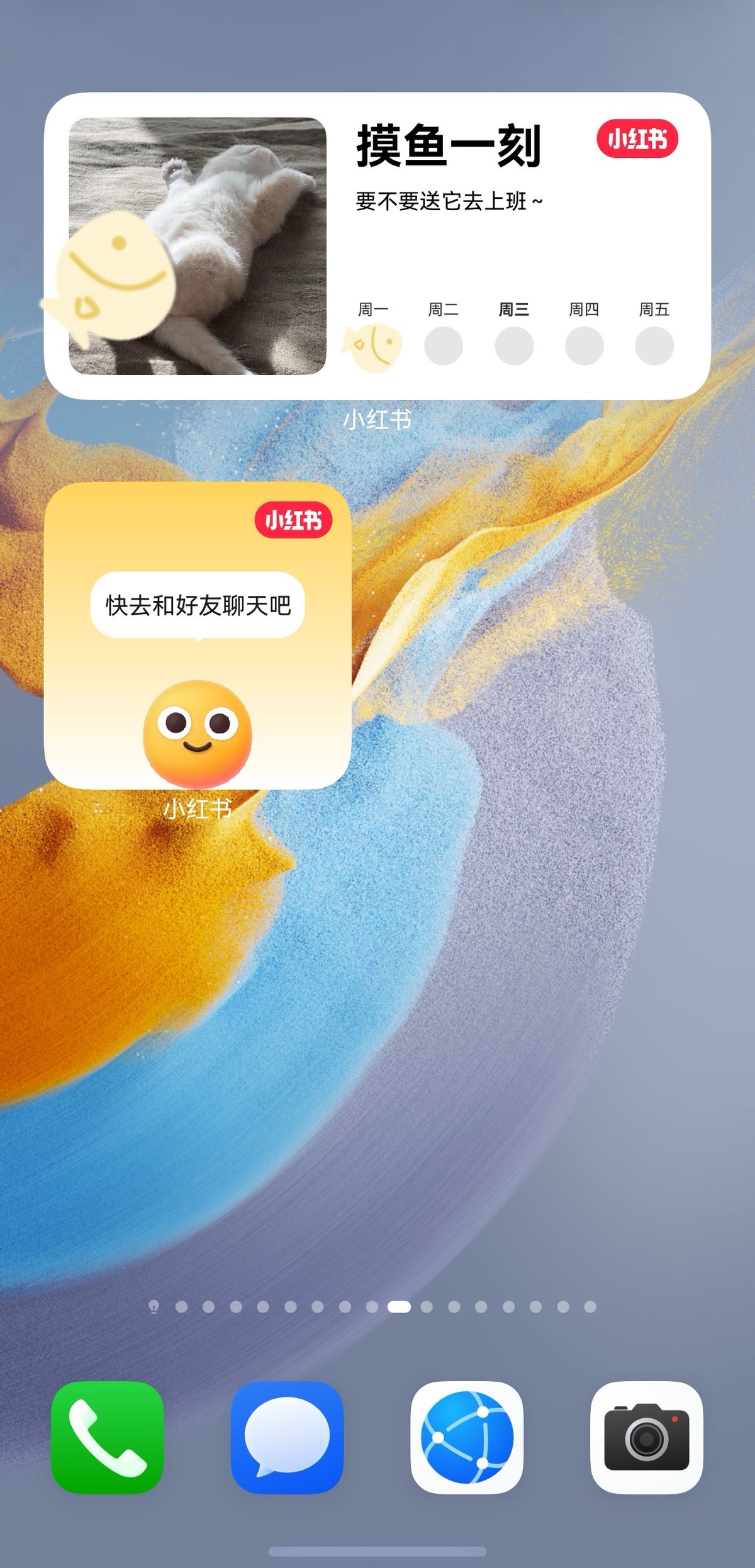 我平时总刷鸿蒙版小红书,它现在的互动卡片就很有意思。一张叫“摸鱼一刻”的卡片,点击后能直接跳转到鸿蒙版小红书的推荐内容,想快速看一些好玩的事特别方便;长方形的“摸鱼一刻”退出后还会有一只灵动的小鱼会游到卡片上,点亮当天状态,记录摸鱼时刻。另一张“桌面好友”卡片,能直达好友聊天界面,退出后,可爱的笑脸会随时提醒你“每日一聊,开心100分”。这些设计让简单的操作多了些情感上的陪伴,推荐大家添加这两个卡片试一试~