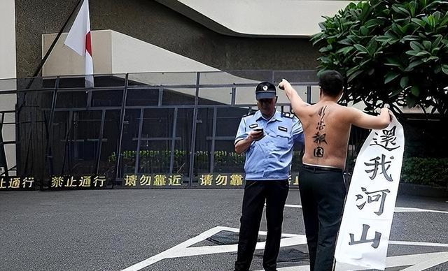 2012年1月8日,也就是靖国神社被烧的第13天,刘强又出现在了韩国首尔的日本大使馆前。