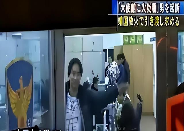 2013年1月5日——人民网-国际频道——日本男子抗议韩释放刘强 向韩领馆扔燃烧瓶