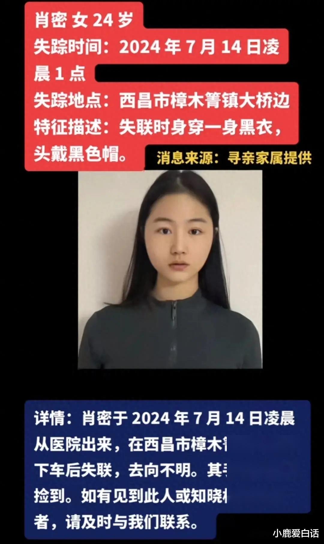这起失踪事件发生在四川西昌,而失踪的女孩只有24岁,据悉当天是陪着妈妈去医院看病做手术的,而在凌晨一点多的时候,女孩便打车回家,而在樟木箐镇大桥边下车后,便神秘失踪了。