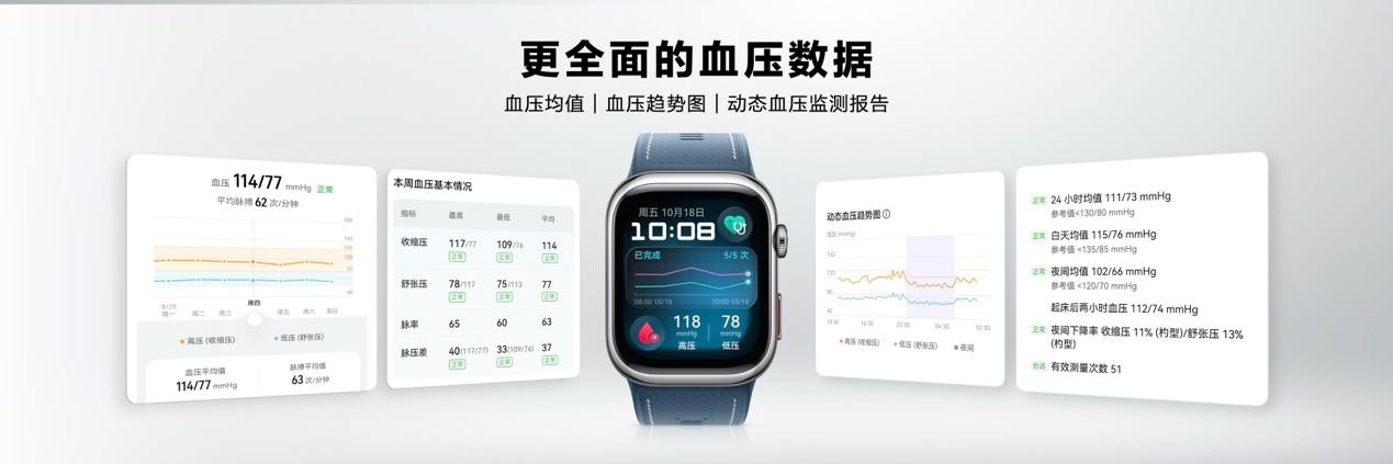 值得一提的是,新升级的定时测量功能,包括单次定时提醒和连续定时提醒,可针对冬季高风险时段设置定制化监测方案。当气温骤变引发血压波动时,这项功能能够及时捕捉异常数据,避免健康风险被忽略。结合华为运动健康APP的血压专业报告功能,用户可以获得完整的血压趋势分析,通过尊享守护服务与医生共同制定更科学的冬季血压管理方案,真正实现为冬季健康保驾护航。