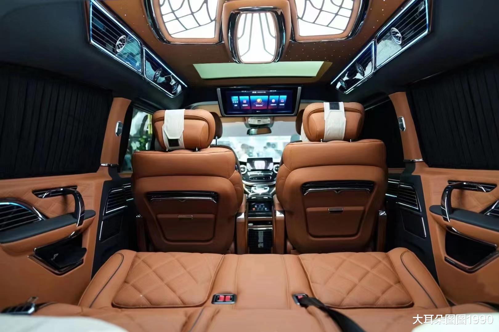 傲旋开拓者是基于梅赛德斯奔驰V级长轴定制版车型打造而来!其底盘属于福建奔驰专属定制底盘,和我们在4S店看到的车型是有所不一样的。外观方面定制了奔驰迈巴赫同款包围,搭配鹰眼式的LED大灯,为其吸睛不少;这也是很多车主最喜欢的一款外观搭配,非常经典的设计。