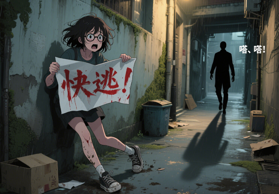 就在这时——嗒。嗒。嗒。清晰的脚步声,从巷口的方向传来,不疾不徐,带着一种冰冷的、刻意为之的节奏感,正朝着我藏身的这条岔道靠近!像死亡的鼓点,敲打在我紧绷的神经上!是谁?!我猛地抬头,像受惊的兔子般死死盯住巷口那片被路灯切割出的光亮区域。一个高大、模糊的黑色身影,正缓缓踱入巷口,影子被灯光拉得又细又长,如同一柄指向我的利剑!他/她停下了脚步,似乎在辨认方向,头部微微转动,目光扫过幽深的巷道。巨大的、无声的恐惧瞬间攫紧了我的喉咙!来不及思考,身体的本能先于意识做出了反应!我像一颗被压到极致的弹簧,猛地弹起,用尽全身力气朝着与巷口相反的方向——更幽深、更黑暗的巷子深处,拔腿狂奔!脚步声在我身后骤然变得急促、沉重,如同跗骨之蛆,紧追而来!“站住!”一个刻意压低的、粗粝的男声在身后响起,带着不容置疑的凶狠。风在耳边呼啸,废弃的纸箱和杂物被我慌乱中撞倒,发出刺耳的声响。肺部火辣辣地疼,每一次呼吸都像在吞咽刀片。我不敢回头,只知道拼命地跑,朝着记忆中民宿所在的大致方位,在迷宫般错综复杂的小巷里跌跌撞撞地逃窜。黑暗成了我唯一的掩护,也成了吞噬我的怪兽。