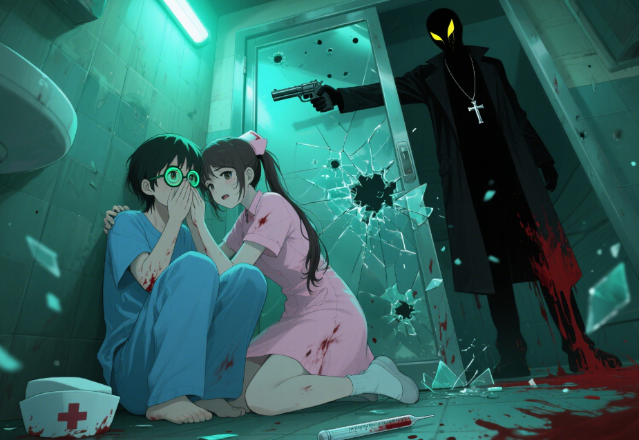 破碎的玻璃门洞如同怪兽张开的巨口,冰冷的风裹挟着血腥气和硝烟味倒灌进来!那个堵在门口的黑色身影,像一座散发着死亡气息的铁塔。应急灯幽绿的光勾勒出他脸上模糊的轮廓,一双眼睛在阴影里闪烁着野兽般冰冷嗜血的光!枪口!那黑洞洞的枪口,如同死神之眼,牢牢锁定了我和玉恩!时间仿佛凝固。极致的恐惧像冰水,瞬间冻结了我的四肢百骸,连呼吸都停滞了!“钥匙。”一个嘶哑、如同砂纸摩擦的声音从黑影喉咙里挤出,带着不容置疑的杀意,“交出来。”他说的不是镯子,是“钥匙”!他果然是为那银镯而来!玉恩的身体在我旁边绷紧得像一张拉满的弓。她的呼吸急促而沉重,我能感受到她身上散发出的那种孤狼般的绝望和……同归于尽的疯狂!“在……在楼下……”我听到自己牙齿打颤的声音,试图拖延时间,“在杨警官那里……”“死了。”黑影的声音毫无波澜,像在陈述一件与己无关的小事,“现在,交出来,或者……死。”杨老……死了?!这个消息像一把烧红的匕首,狠狠捅进我的心脏!那个眼神复杂、似乎想保护我的老警察……因为我带来的这只该死的镯子……死了!巨大的悲愤和冰冷的绝望瞬间冲垮了恐惧的堤坝!“跟他们拼了!”玉恩发出一声凄厉的尖啸,像一头被逼到绝境的母兽!她猛地从地上一跃而起,手中不知何时多了一把闪着寒光的——医用手术剪!她竟一直藏着这个!娇小的身影带着决死的疯狂,不顾一切地扑向门口那个持枪的黑影!“找死!”黑影发出一声不屑的低吼,枪口瞬间调转!扳机即将扣下!玉恩完了!就在这电光火石之间——“砰!!!”一声震耳欲聋的巨响!不是黑影的枪!声音来自破碎的卫生间门外!堵在门口的黑影身体猛地一僵!他持枪的手臂上,瞬间爆开一团刺目的血花!“呃啊!”他发出一声痛苦的闷哼,枪脱手掉在地上!