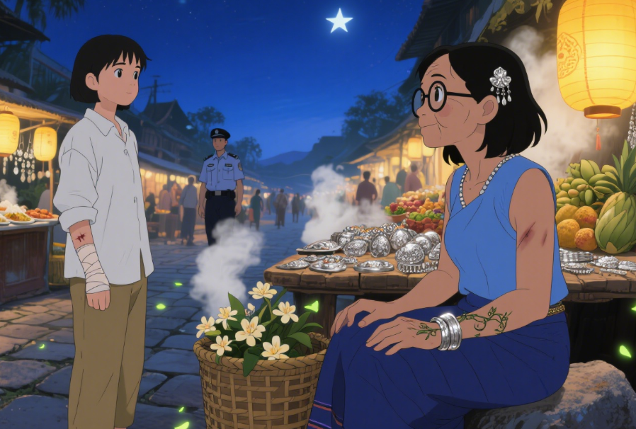 后来,芒市的草牙街依旧喧嚣,只是少了一个沉默的老妇摊位。玉恩继承了那只银镯,上面的藤蔓符号最终指引警方捣毁了一个庞大的犯罪网络。我腕上留下了一道浅浅的疤痕,像一条隐秘的河流,提醒我深渊曾近在咫尺。当月光再次照亮夜市,我总记得:最深的黑暗里,也藏着不肯熄灭的微光。
