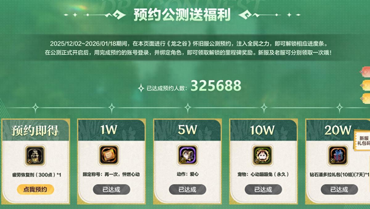 各位谷迷,《龙之谷》怀旧服公测未启先火,全网预约人数现已突破 30 万,首发新服“怦燃心动”预创角迅速饱和!面对持续涌入的玩家,官方已紧急加开全新服务器“马上来财”。市场热度说明一切,这不仅是回归,更是2026年肉眼可见的第一桶金——任何一位成熟的搬砖党,都不会错过这波原始红利!