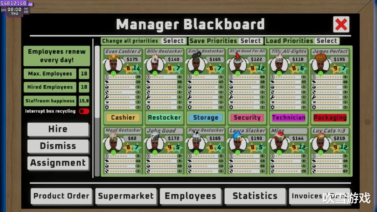除了协作挑战,游戏还提供了一套完整的经营系统。玩家需要共同决策采购清单、定价策略、库存管理和设施升级。定价环节尤其考验团队的商业头脑:低价策略能吸引人流但利润微薄,高价路线带来丰厚收益却可能吓退顾客。游戏中的顾客AI拥有真实的购物行为模式,他们会比价、挑剔商品新鲜度,甚至因为找不到心仪商品而愤然离去。随着游戏推进,团队可以解锁生鲜区、冷冻柜、烘焙坊等新区域,每一次扩张都需要集体规划——是优先增设收银台缓解排队压力,还是扩大仓库容量提升备货能力?这些决策时刻让经营模拟超越了表面趣味,呈现出真正的战略深度。