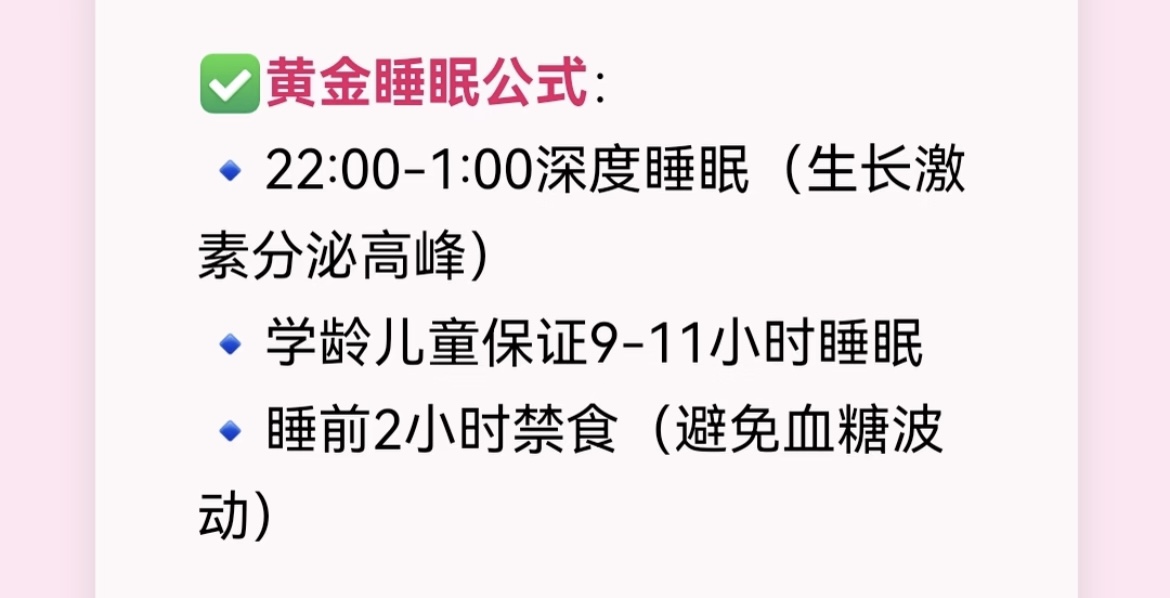 晚上十点到凌晨一点,是生长激素分泌最旺盛的时候,这就好比给植物浇水,错过了最佳时间,再补也事倍功半。学龄期的孩子每天要保证九到十一个小时的睡眠,哪怕周末也别让孩子睡懒觉睡到中午,打乱生物钟。睡前两小时别让孩子吃东西,特别是甜食和高热量零食,血糖波动会影响激素分泌,就像给生长的“发动机”添了堵。每天晚上九点前上床,十点进入深度睡眠,让身体在“黄金时段”全力工作。