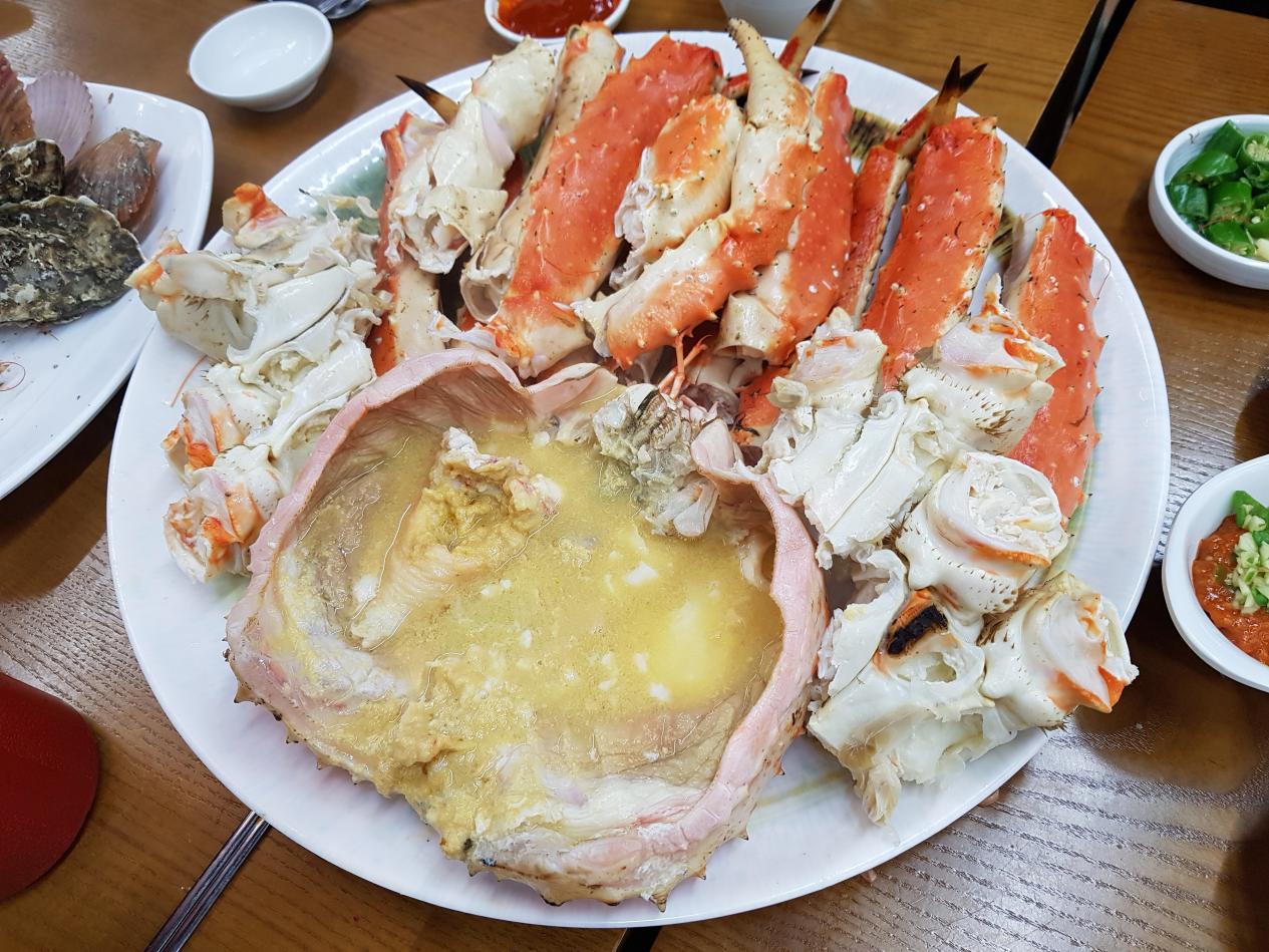 清蒸帝王蟹:蟹脚肉饱满,蟹壳还能用来炒饭。
