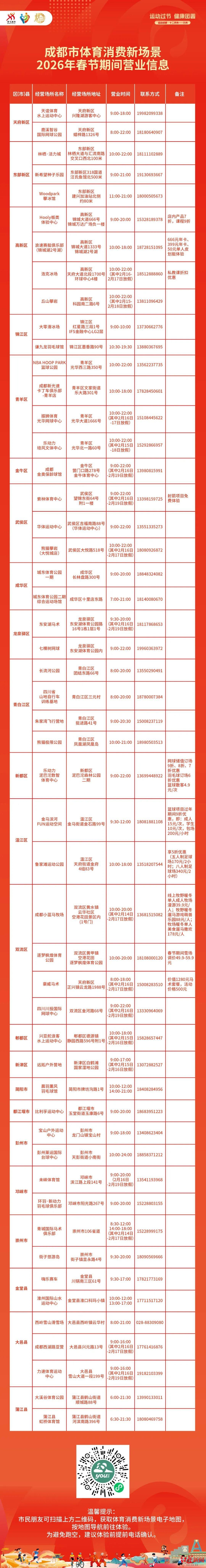 成都这些体育场馆(场所)春节不打烊,大家看过来→