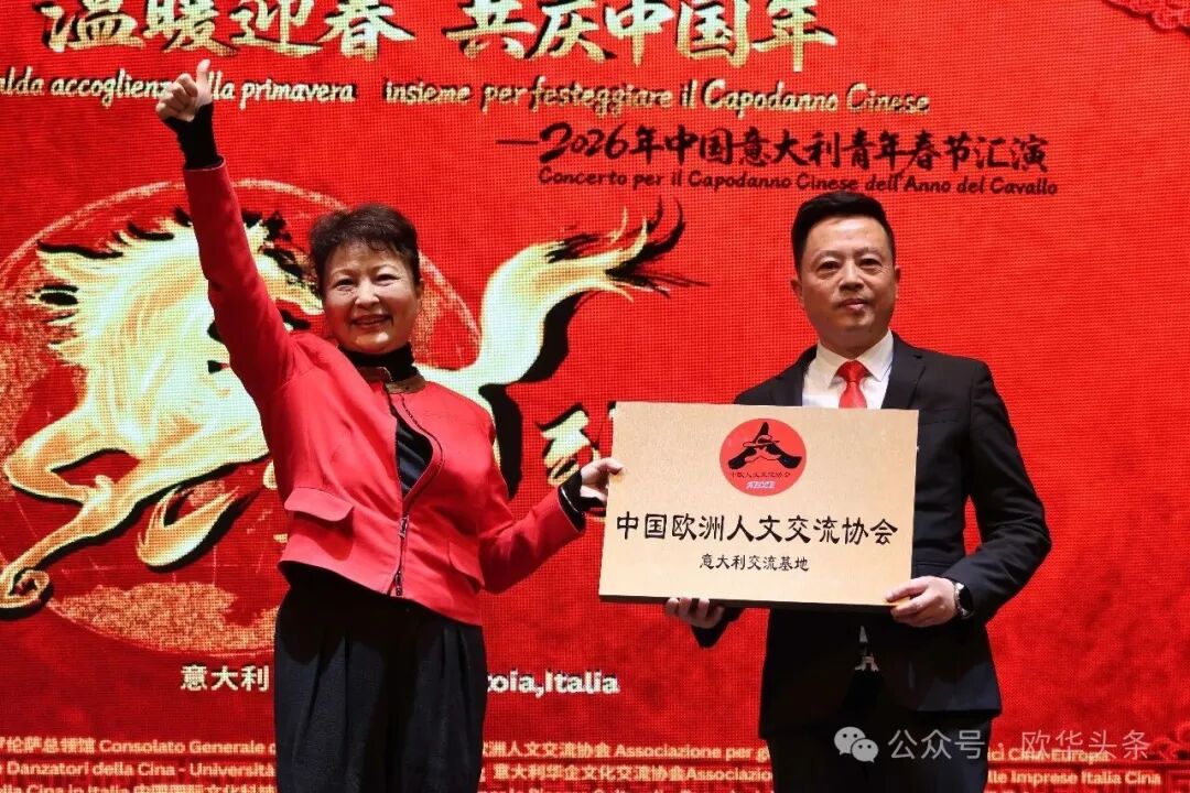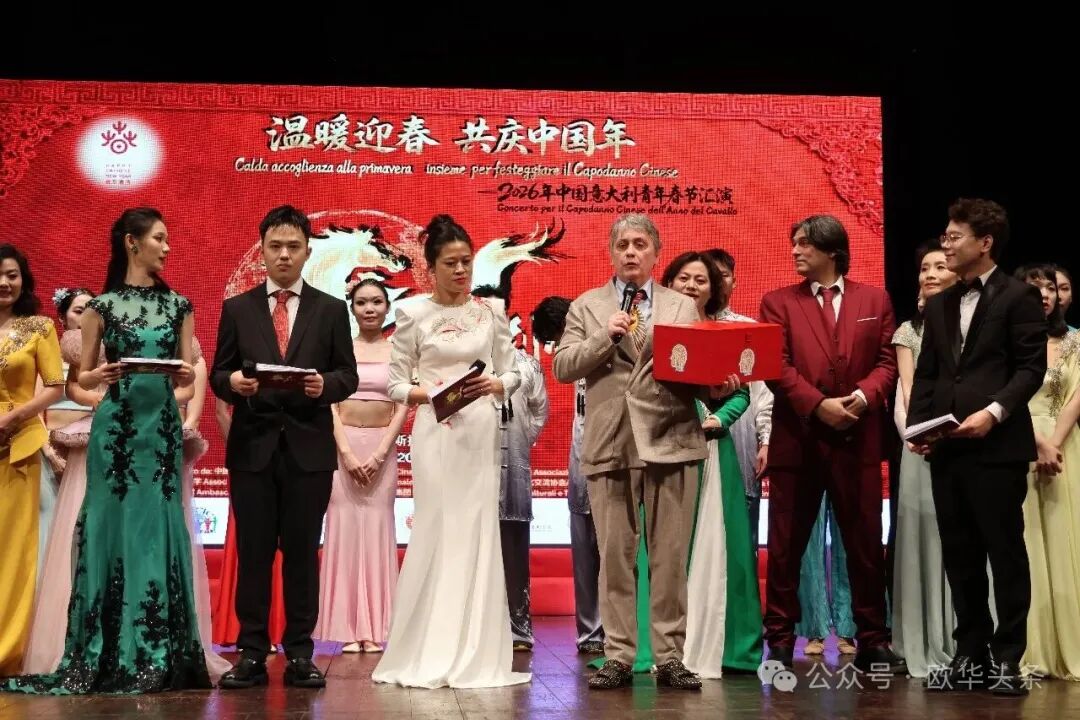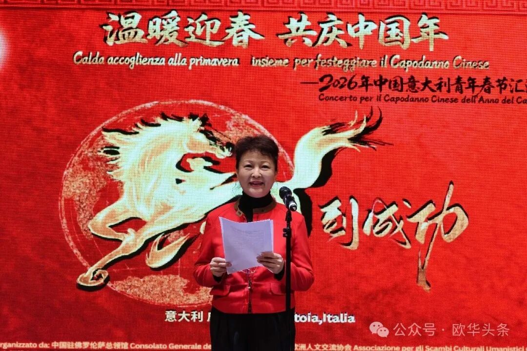 李羚主席在致辞中表示,看到众多华人同胞前来观看演出,是对全体艺术工作者最大的支持与肯定,让人倍感温暖与亲切,仿佛回到家一般。她希望未来能与意大利华企文化交流协会继续携手合作,将文化交流的足迹传播至亚平宁半岛乃至欧洲更多城市,让艺术成为海外游子最温暖的团圆纽带。她向大家送上新春祝福,祝愿新的一年身体健康、万事如意。