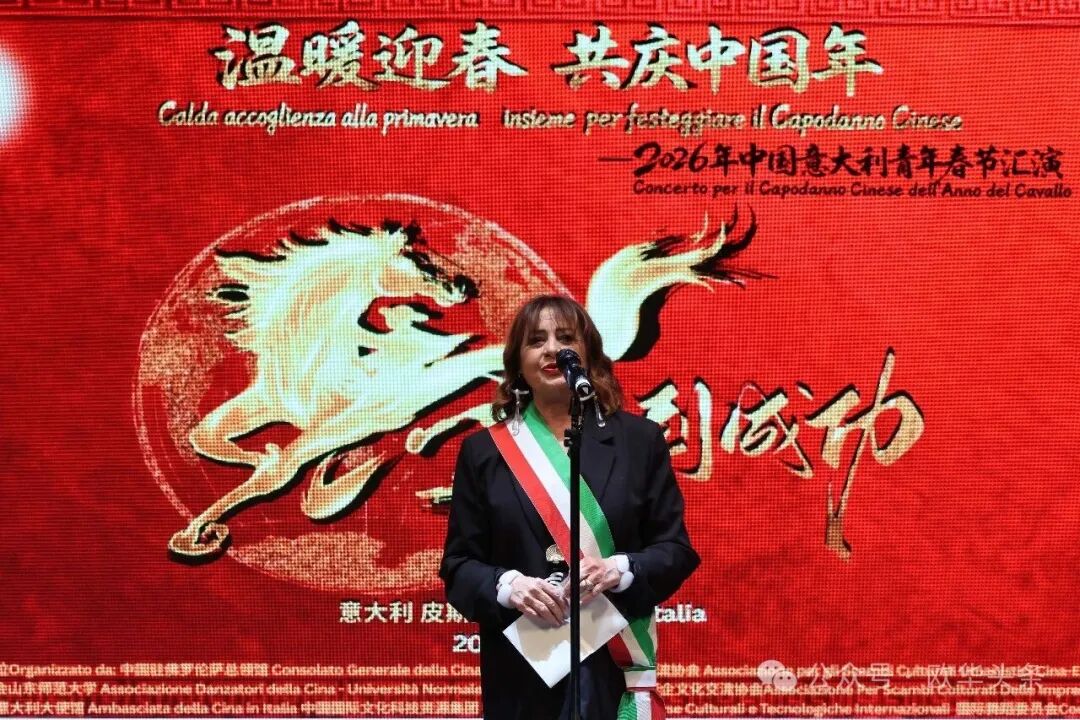 尹总在讲话中强调,中国和意大利同为文明古国,友好交往源远流长。当天中意青年同台献艺,不仅展现了跨文化交流的魅力,更彰显了文明互鉴的蓬勃生机。致辞最后,她祝愿演出圆满成功,向大家致以马年诚挚祝福。
