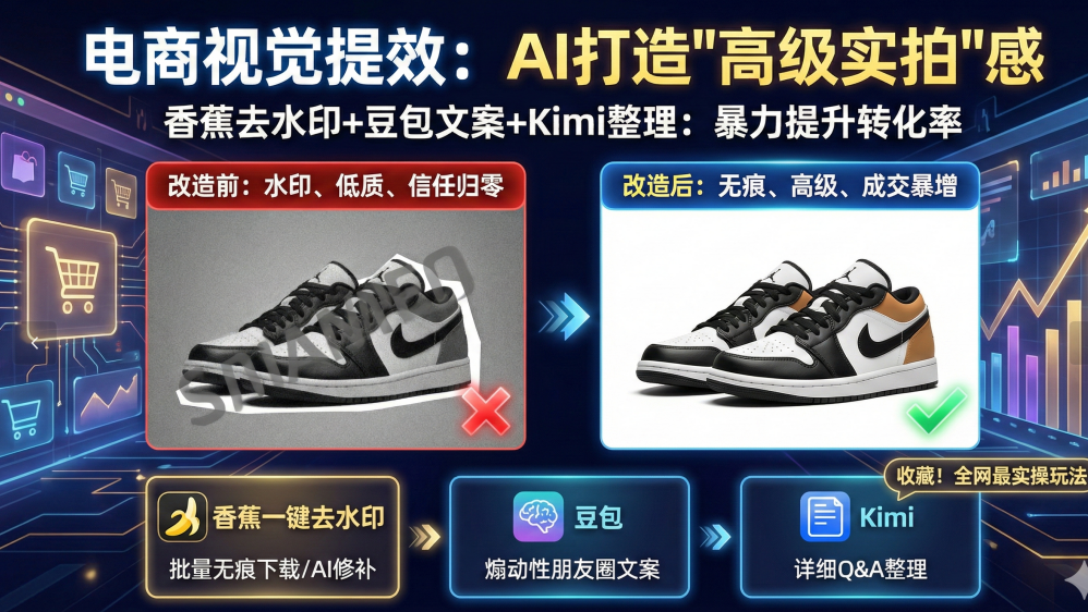 电商圈有一句话:卖货就是卖图。你的图如果带着别人的 Logo,或者是有明显的抠图痕迹,客户对你的信任度会瞬间归零。想要高转化,你的素材必须看起来就像“自己拍的高级实拍”。