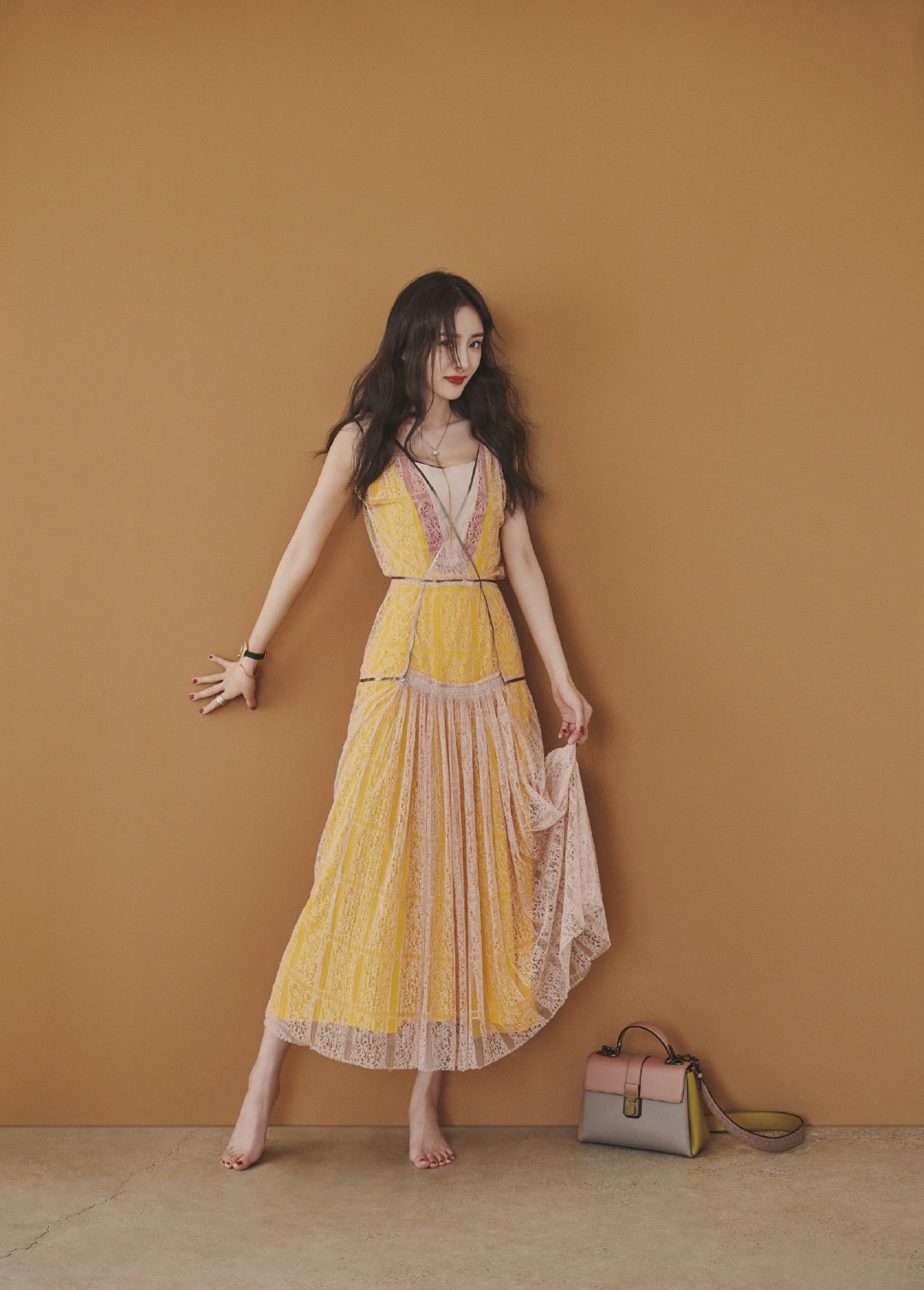 而杨幂的一张身着淡黄色长裙的写真照,也成为了淡黄色长裙穿搭的标杆和典范,整套造型传递出来的复古暖色调氛围,刚好舒缓了这个多事之秋的惊悸,而这也是此次黄色系能深入人心,成为大众热捧色调的一个重要原因,恐怕今年春夏不穿点黄色系出门,都对不起这阴霾了一季儿的心情。