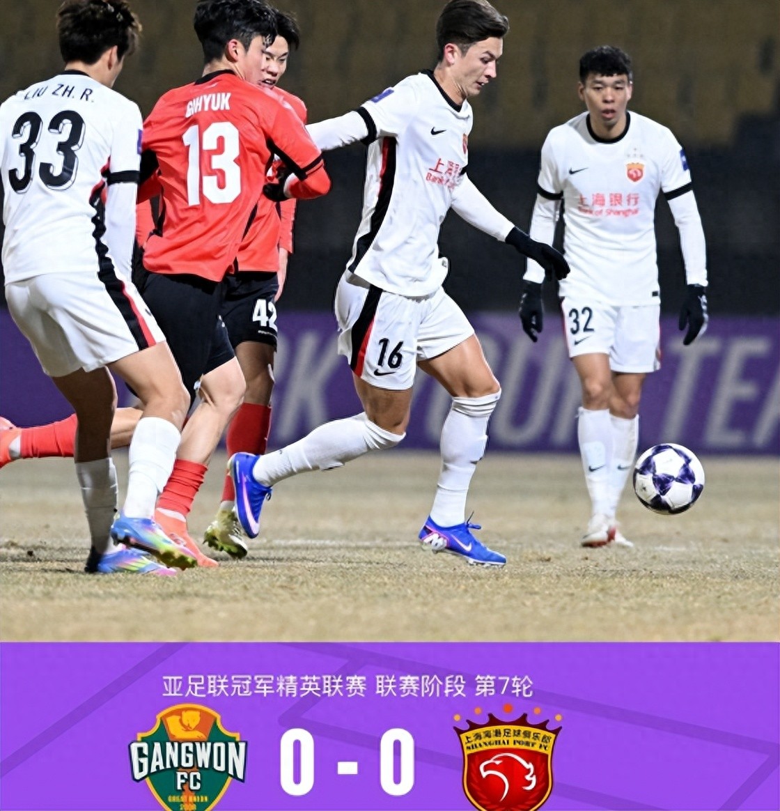 北京时间2月11日晚,亚冠精英联赛联赛阶段第7轮,上海海港客场挑战韩国球队江原。此役,上海海港几乎有一半主力无法出战,场面上被对手全面压制,好在,上海海港本场的防守还算稳健,经过一场90多分钟的鏖战过后,最终0:0逼平对手,拿到了一场还算过得去的平局。