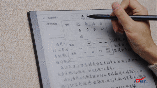 实测“第三代东云笔”的书写倾角大约在155度左右,压感识别灵敏迅速,即便是大幅度的笔画,也能拥有极低的出墨延迟。配合类纸书写阻尼调校,实测能带来近乎真实纸张的书写体验。