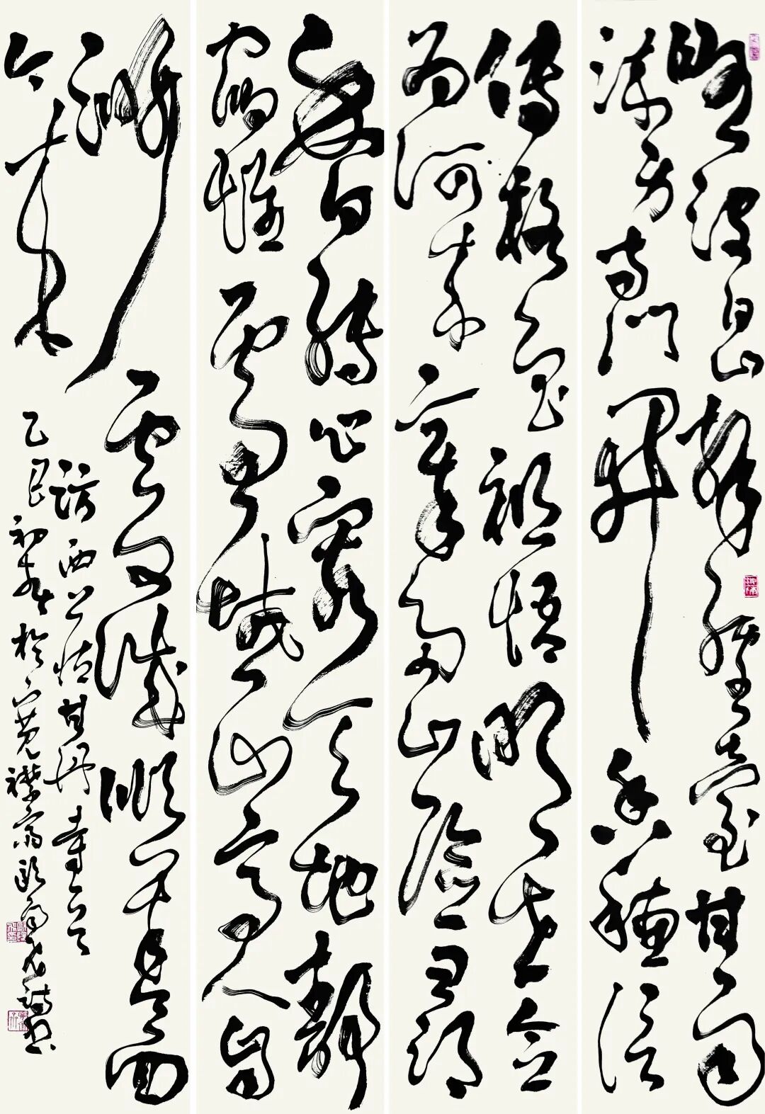 草书四尺四条屏 欧阳飞诗《访西藏甘丹寺》