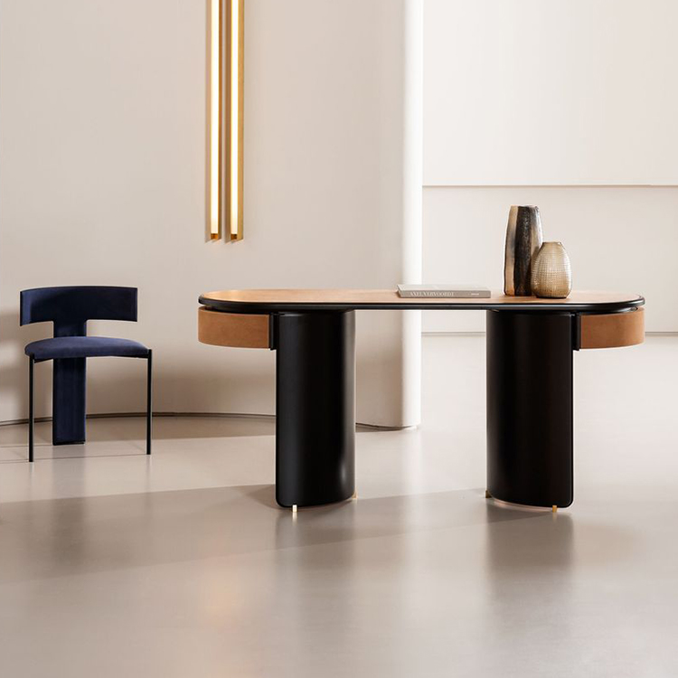 柔和曲线散发着优雅和风格的气息,而其结构中使用的奢华材料则增添了永恒的奢华感。无论是在优雅的家中还是在享有盛誉的工作环境中,这张桌子都能无缝集成,为任何空间增添一丝精致感。