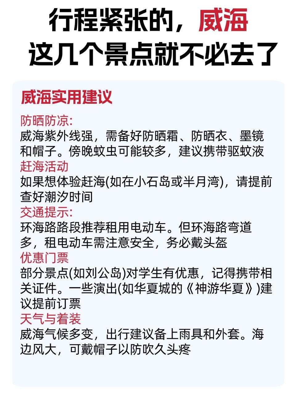 🍂10 月威海早晚温差超 10℃,海边风大,出门记得带薄外套🧥,正午阳光足仍需涂防晒~