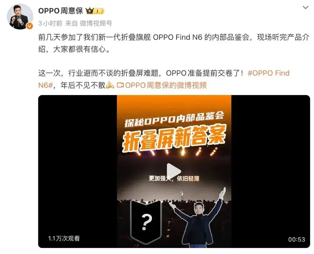 结合以往的消息来看,OPPO Find 系列产品负责人周意保曾在预热中提到过,“前几天参加了我们新一代折叠旗舰 OPPO Find N6 的内部品鉴会,现场听完产品介绍,大家都很有信心。这一次,行业避而不谈的折叠屏难题,OPPO准备提前交卷了!OPPO Find N6,年后不见不散”。