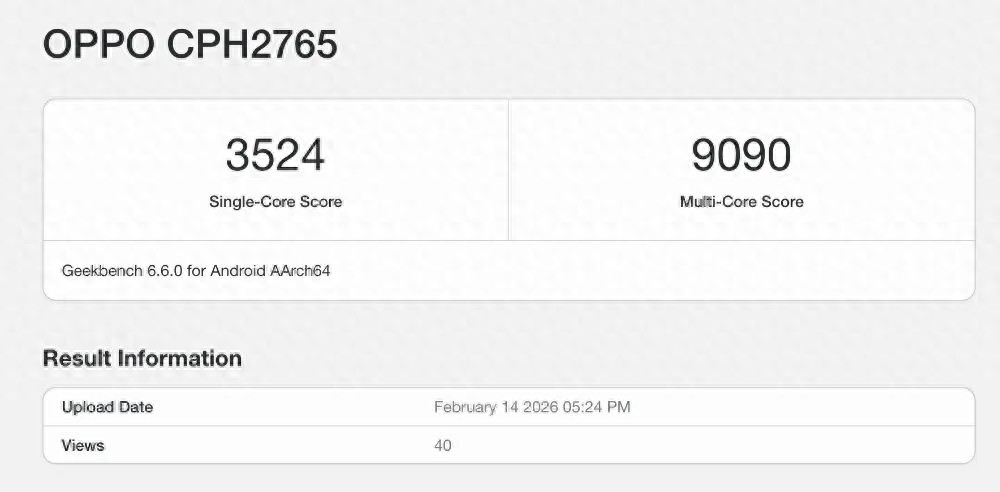 近日,型号为OPPO CPH2765的OPPO旗下新机现身了Geekbench 跑分,其单核成绩为3524、多核成绩9090。
