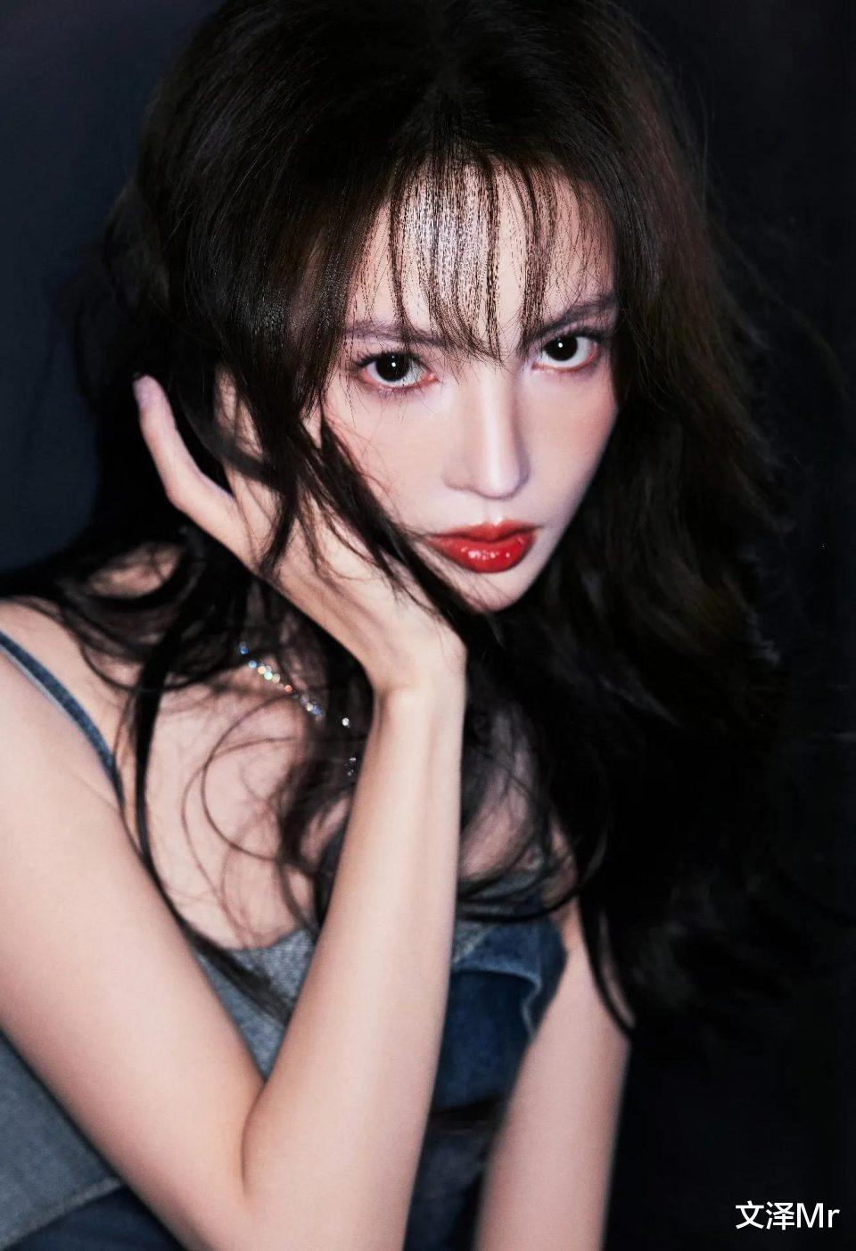 镜头里的金晨,指尖轻轻勾着卷发,珍珠项链垂在锁骨间,像把月光揉进了牛仔的粗粝里。你很难不注意她的脸:1.5cm 的碎刘海遮不住眼尾的锐角,红唇却又把冷感揉成了风情 —— 这是典型的“矛盾美”,像她演《孤注一掷》里的梁安娜,又纯又欲的反差感天生就长在五官里。