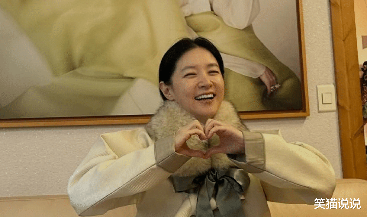 不知道是被什么事情给逗笑了,李英爱用双手比心的时候忍不住开怀大笑,笑得十分开心。