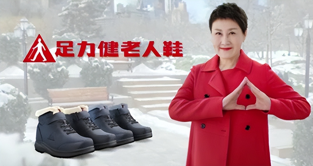 2017年她接了足力健老人鞋代言,当“首席体验官”,广告里拍着胸脯说鞋子防滑“超国际标准300%”。