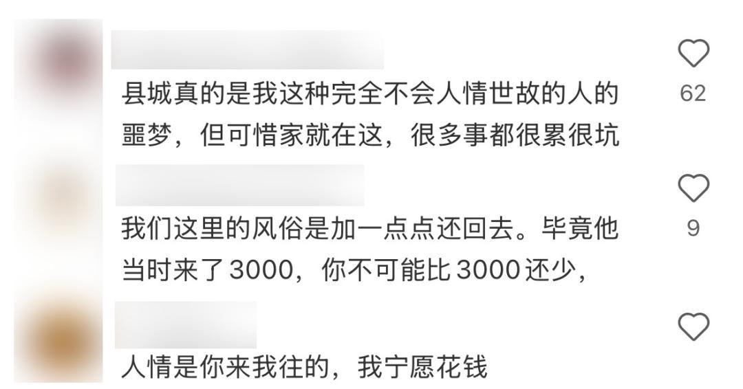 更让人有压力的是,县城的人情往来里还藏着不少“面子消费”。