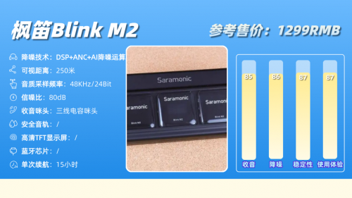 枫笛Blink M2以一拖二配置适配双人场景,30g发射器搭配磁吸背夹,贴附衣领稳固不勾面料,隐蔽性强。TFT触屏操作直观,轻触即可调节音量与降噪模式,冷靴座可直连相机,Type-C接口兼容手机、电脑,配件收纳省心。