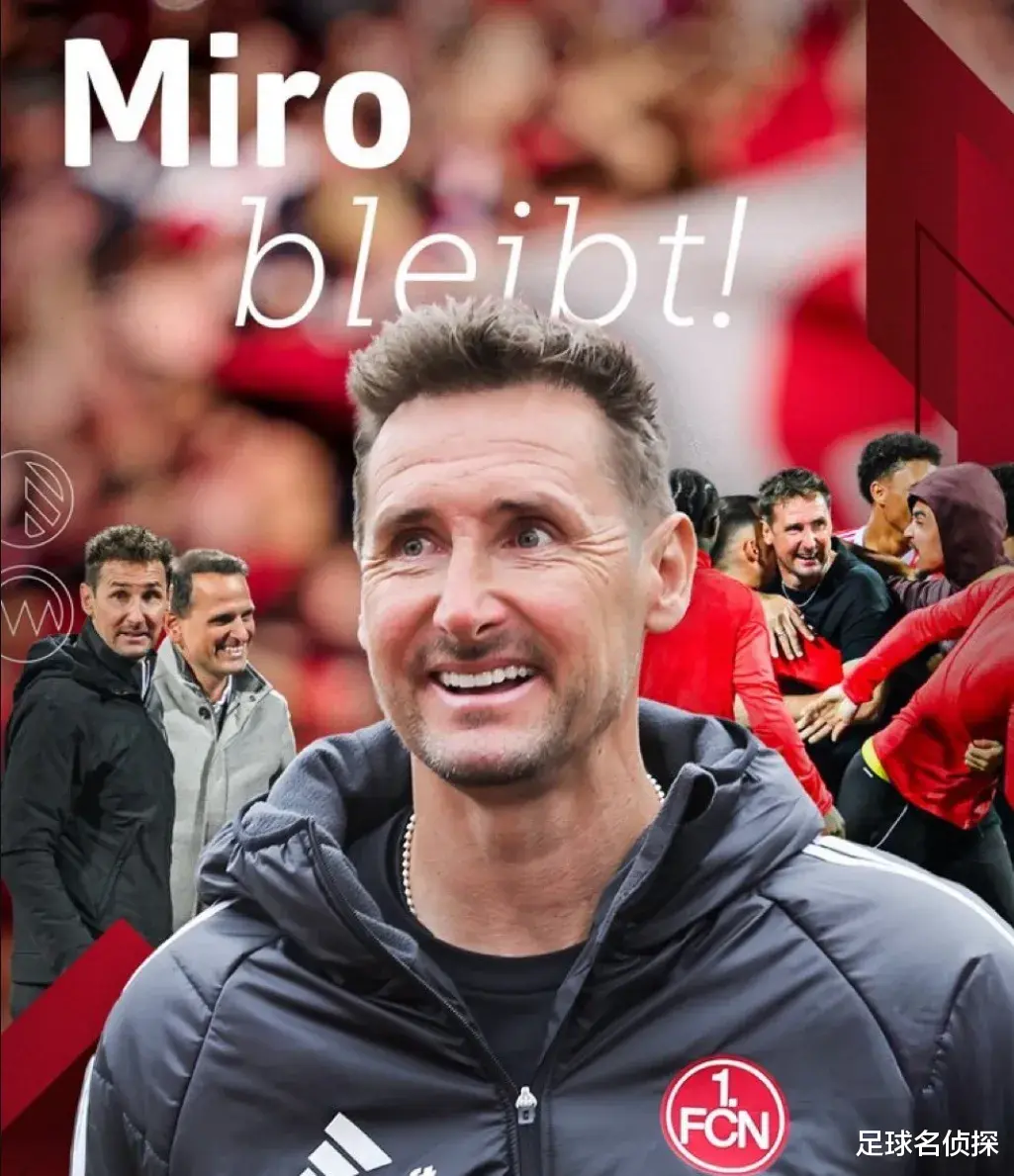 官方:纽伦堡宣布续约了米洛斯拉夫-克洛泽。