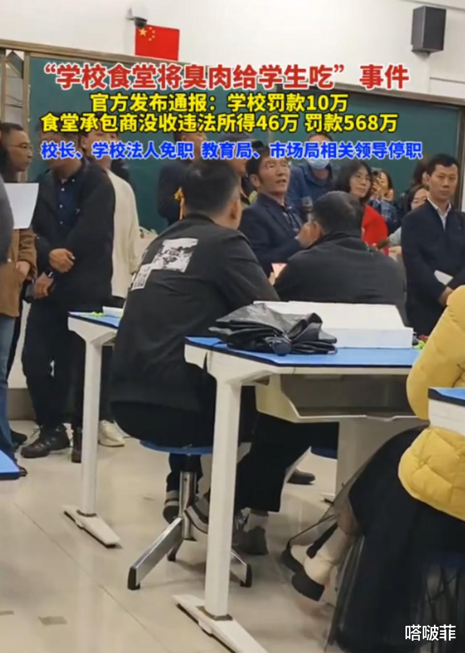 “如果不是我进到食堂,也不知道还有生臭肉”,这是来源于一名家长硬闯学校厨房后说出来的话,真的不是因为勇敢的家长挺身而出,这起事件也不会被曝光。“良心何在”是家长质问厨师和学校领导的责任!