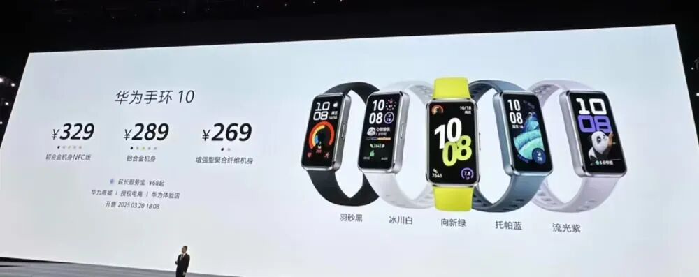去年 3 月,华为正式推出华为手环 10 系列,采用轻量化设计、常规续航 8 天,定价 269 元起。