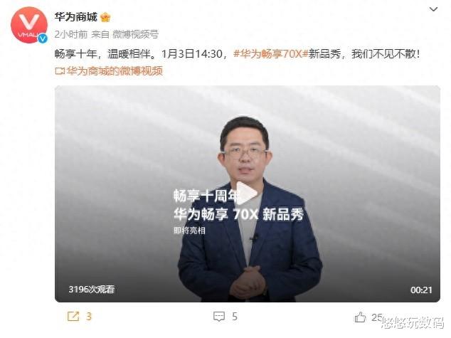 据了解,新品将于1月3日14:30在华为终端直播间,通过线上直播的形式首次亮相。目前看这款产品结合了先进的技术和时尚的设计,还在通信方面实现重大升级。作为华为畅享系列十周年的诚意之作,对此你怎么看,欢迎留言和博主一起讨论。