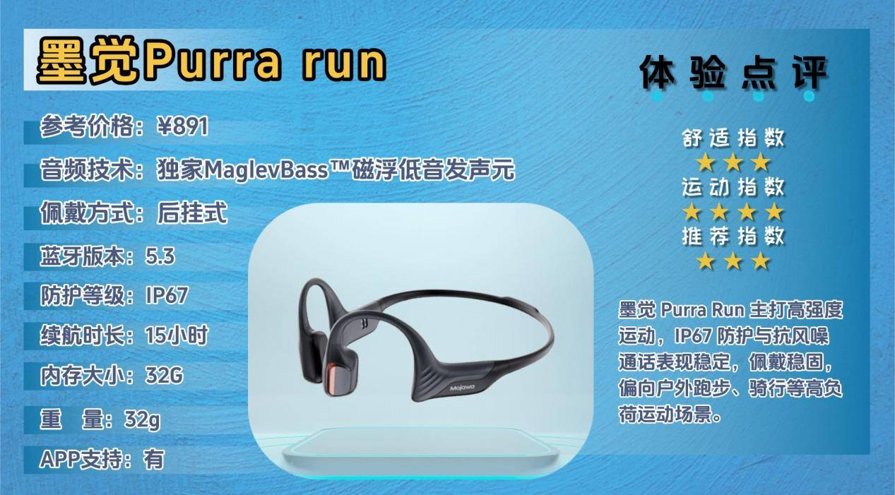 Purra Run属于墨觉偏户外与强环境适应取向的一款骨传导耳机,强调防护能力、通话稳定性和续航扩展,更适合对环境要求比较高的运动人群。