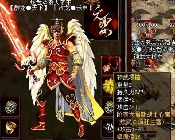 15 区五羊的攻 12 + 幸运 2 神武项链,是暴力战士的终极追求。作为神武套装的核心部件,普通神武项链已属稀有,而这条突破属性上限的极品,相当于给战士额外多带了一把武器,让持有者帝王横扫全服。这位 71 级的巅峰大佬,原本在 100 区就与对手斗得不可开交,转战五羊区后,正是凭借这条项链的强悍加成,硬生生掀翻了原有统治格局,一统整个区服,成为无人能敌的霸主。当年曾有土豪开出百万天价收购,却被帝王断然拒绝 —— 对他而言,这不仅是装备,更是统治力的象征。