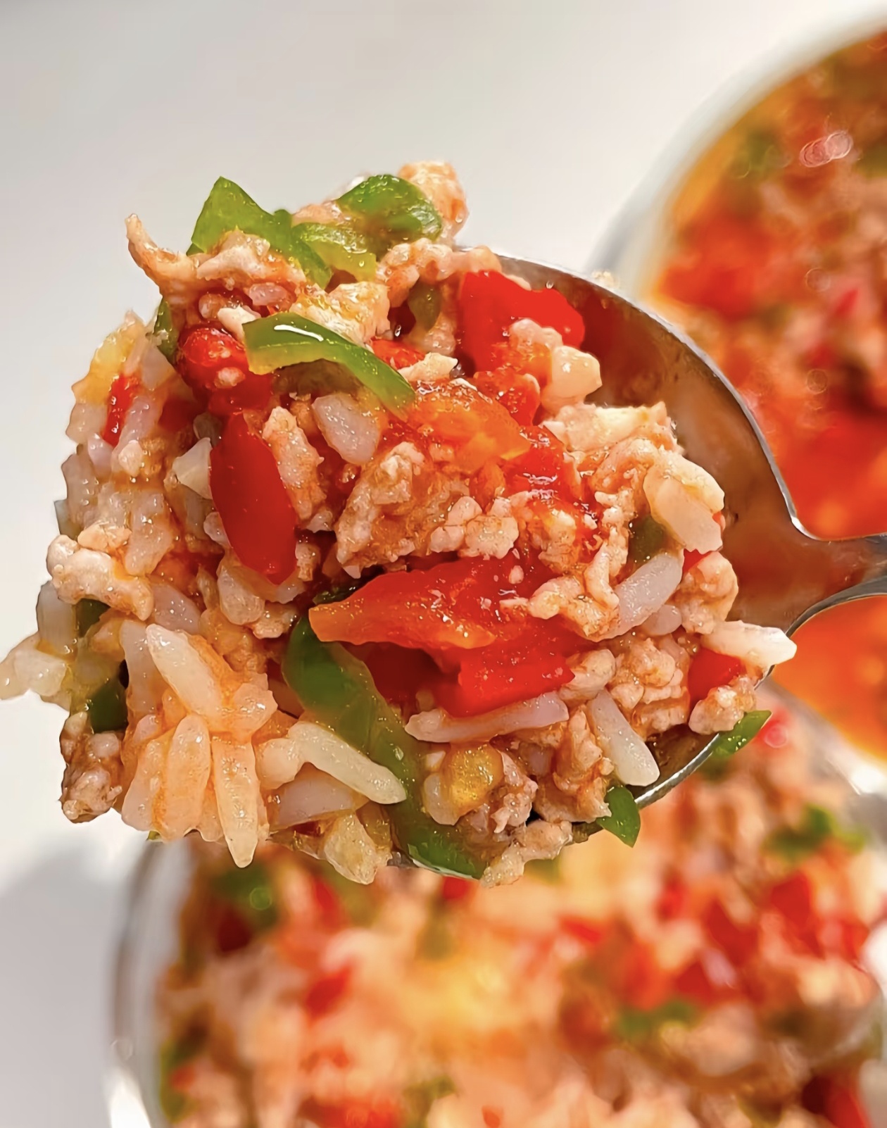 然后把刚才炒好的肉末倒回锅里,再加入红椒和小米辣碎,翻炒均匀。最后加入半勺盐、一勺白糖和适量的鸡精,继续翻炒3分钟,让所有食材的味道充分融合。看着锅里红彤彤的汤汁,裹着粉嫩的肉末和翠绿的辣椒,口水都要流下来了。