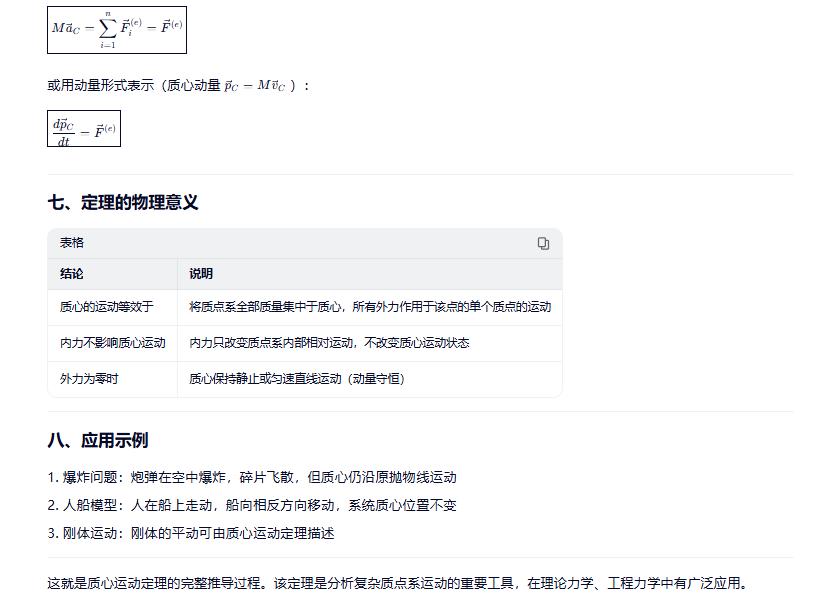 质心运动定理推导过程声明:内容来源于网络,版权归原作者所有,转发旨在分享,禁止商业用途,若侵权后台留。