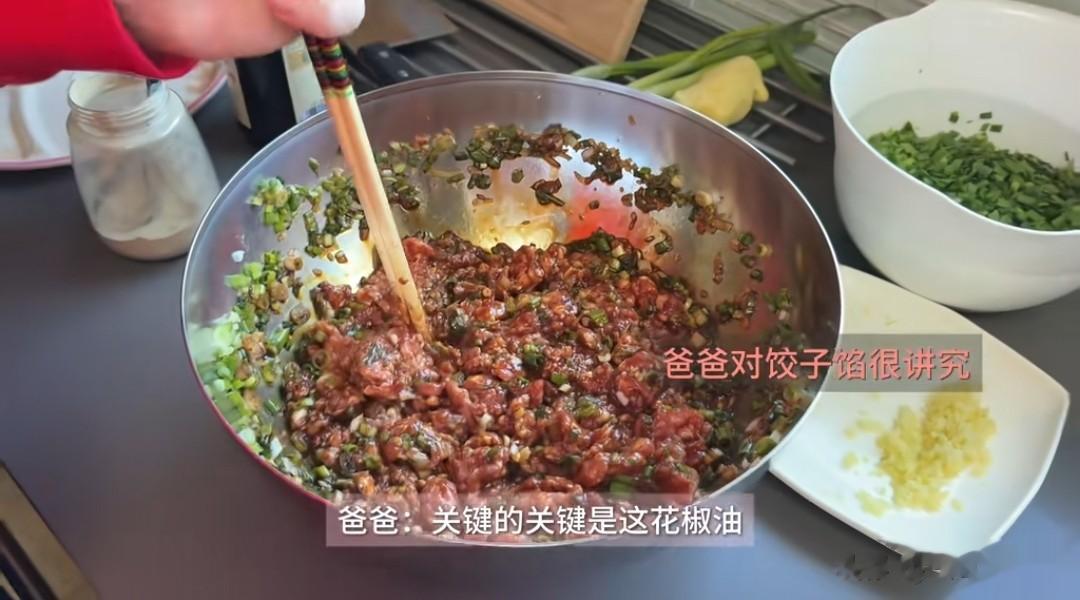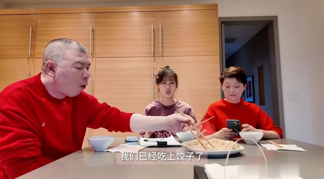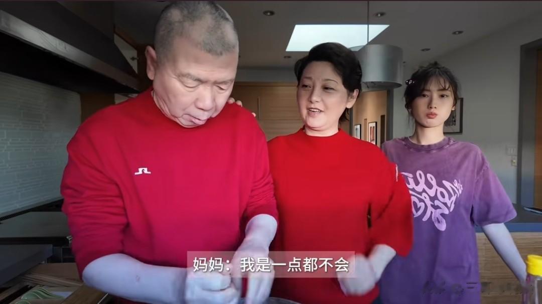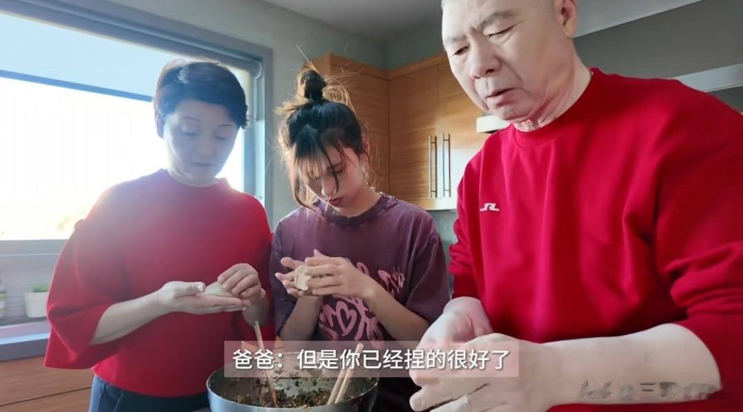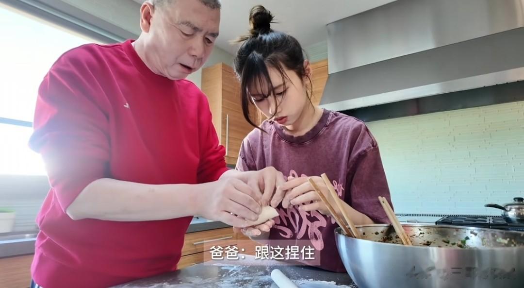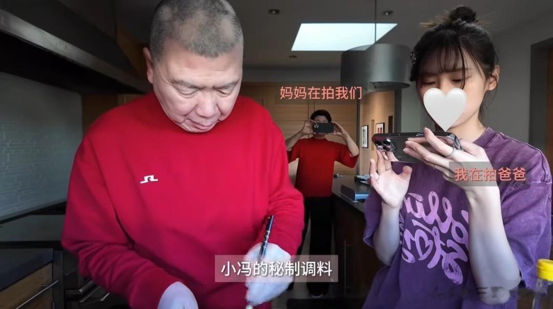 等徐帆出来时,冯小刚把饺子馅调料已经快做好了,徐朵在拍爸爸,徐帆则在父女俩身后拿着手机记录,像很多普通家庭一样,画面温馨又美好!