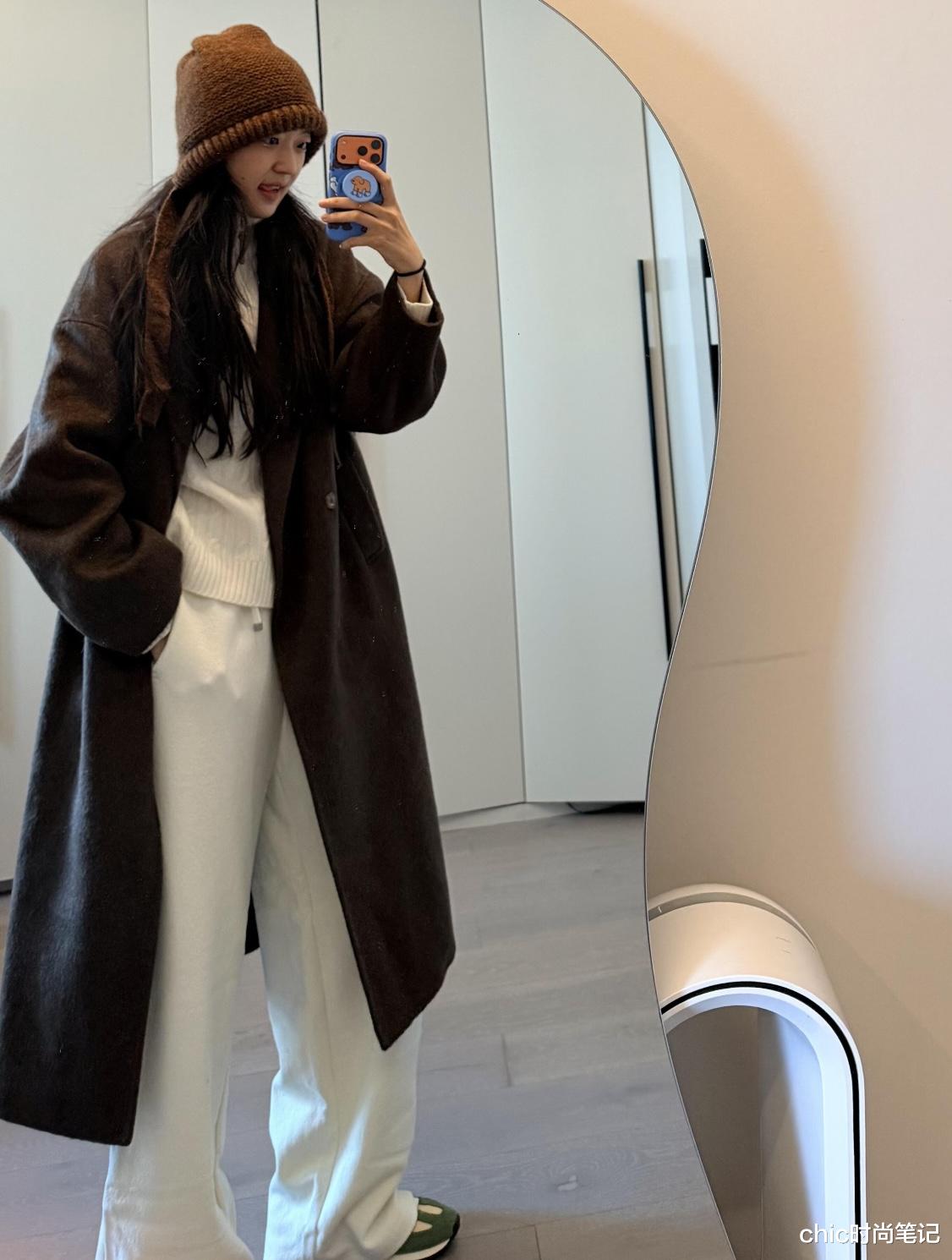 棕色羊绒大衣自带贵气与奢华,有点与淡人的风格不同,但在色系上应该是淡人喜欢的颜色。全身上下都是棕色系,深沉而颇有质感,偏正式一点的场合都能穿。