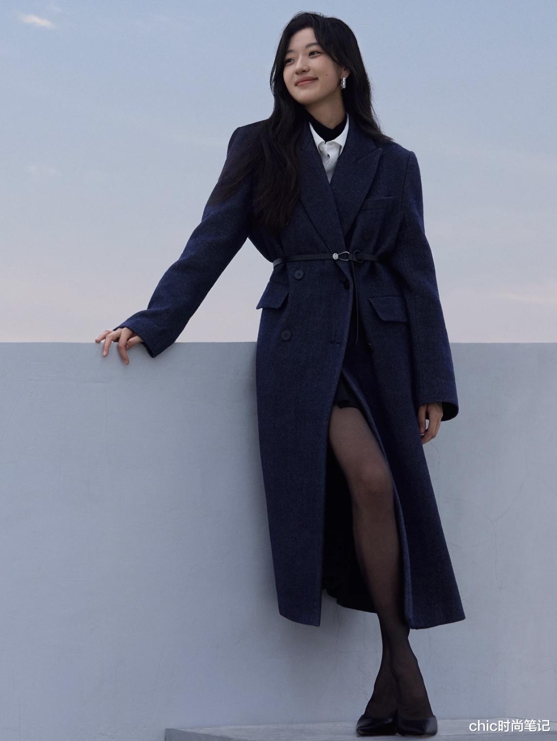 高个子女生根本不需要担心服装会压身高,一件黑色羊绒大衣用细腰带做了身材比例划分,内搭是黑色高领毛衣叠穿白色衬衫,层次与细节并存,配上黑丝袜和黑色高跟鞋,女人味十足,若是搭配黑色平底高筒靴,会更显休闲~