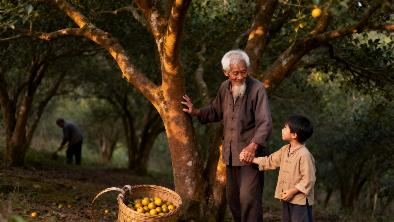 深秋的湘南山区,霜染层林。78岁的老茶农陈爷爷拄着竹杖,带孙子走进屋后那片百年茶林。孩子踮脚摘下一颗青褐色茶果,好奇地问:“阿公,这树什么时候种的呀?”老人轻抚粗糙树干,声音温和:“你太爷爷18岁那年亲手栽下,如今轮到你来收果了。”孩子睁大眼睛:“那……它等了我太爷爷一辈子?”老人笑了:“不,它等了我们陈家四代人。”