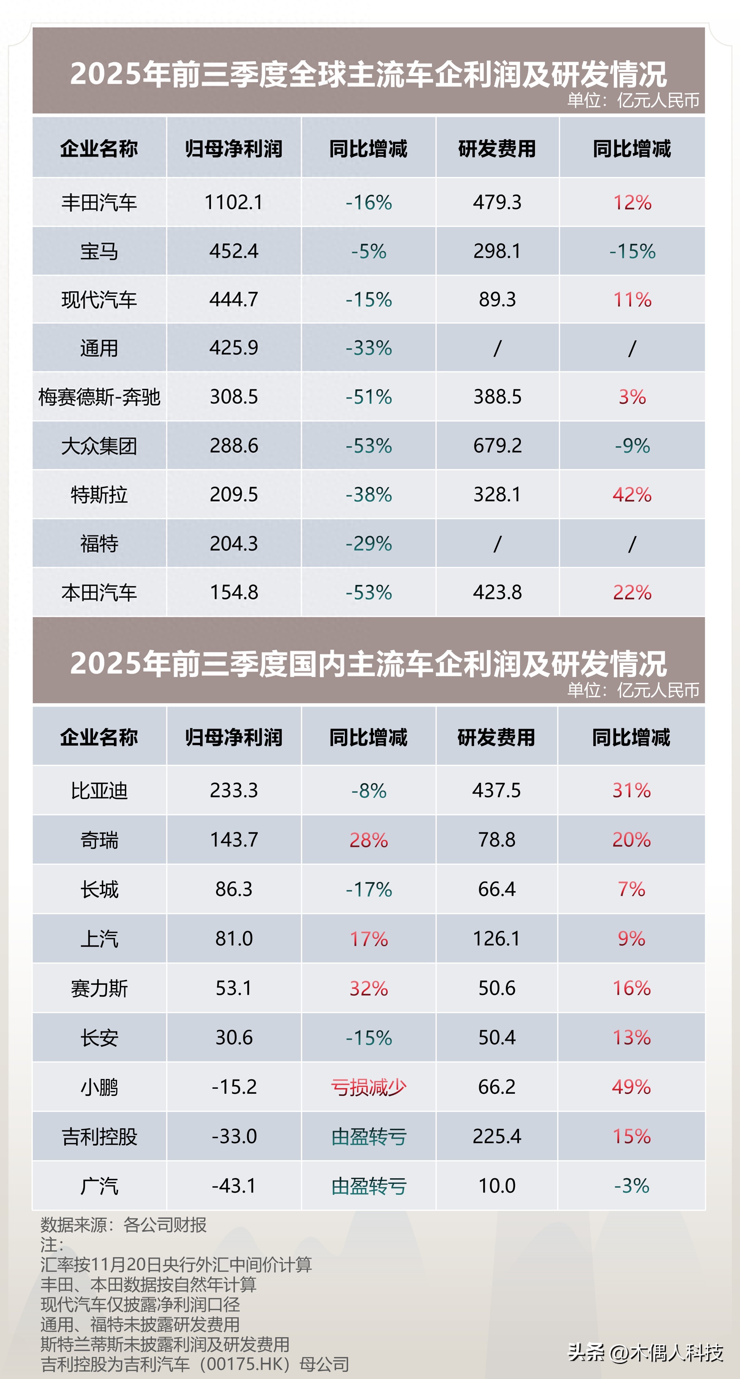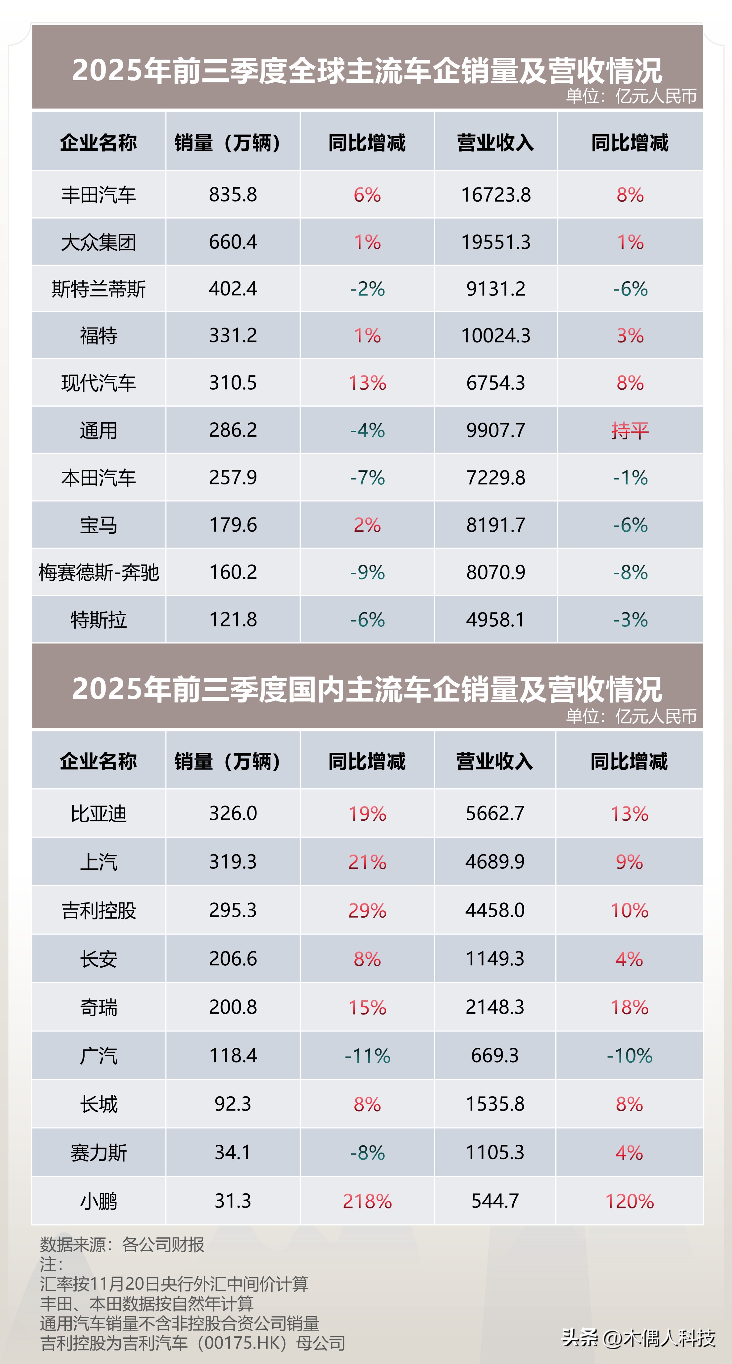 2025年马上就要结束了,从全球车企三季报数据来看,国内外车企业绩呈现出鲜明的反差,而“东升西降”的行业趋势也越来越明显。