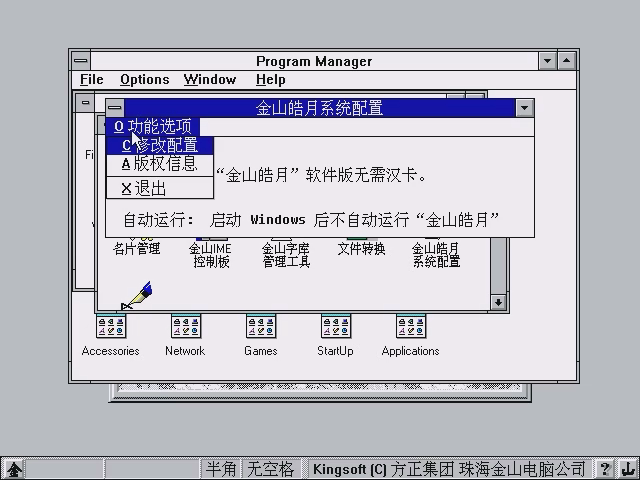首先是金山皓月系统配置,金山皓月的软件汉化功能无需依赖汉卡硬件。