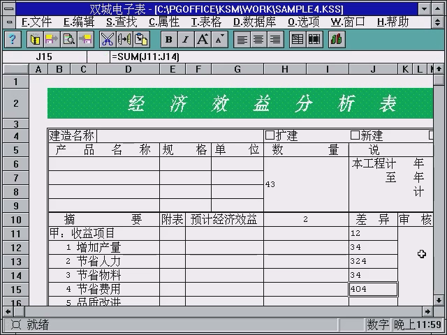 ▲样例文件,双城电子表居然都支持所见即所得了,但WPS不支持。