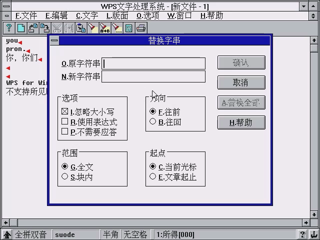 ▲替换功能,其实个人感觉界面文字上还是过于专业了,当时有电脑的都不多,“字符串”这个东西放普通用户里会有多少人懂?