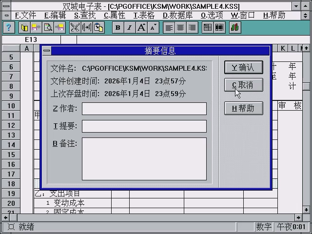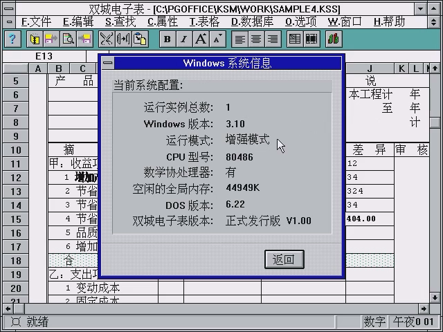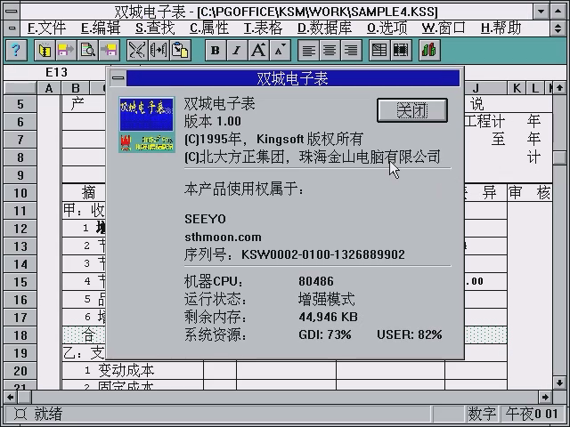 结尾以上就是盘古组件的全部内容了,其实整体看起来,功能还是很多的,尤其是双城电子表,完成度相当高,甚至还支持了所见即所得,唯一差的似乎是不支持多sheet页;但是最有名气的WPS却没有跟上,而且整体名称没有体现出WPS来,这在当时一套定价2000多的软件上有点遗憾。
