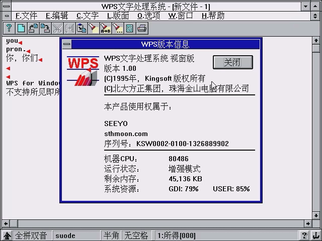 ▲这是WPS在Windows下的首个含图形化界面的发行版。