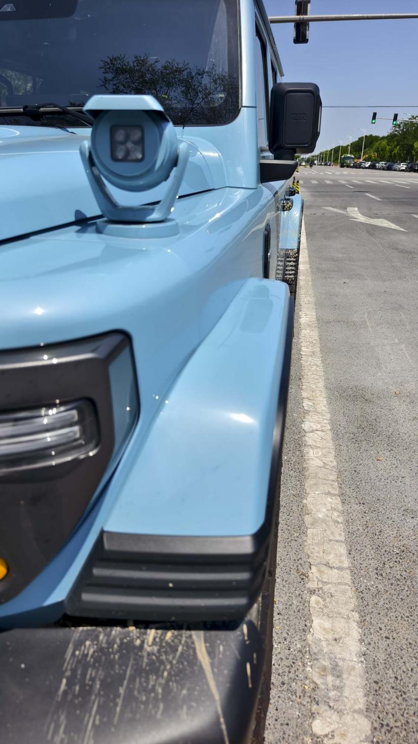 是我的错觉吗哈哈哈,阳光下的212车标直接反光,自带存在感 Buff,前脸辨识度直接上去了,加上这个长风的这个蓝色车漆,完全不担心撞款的问题。