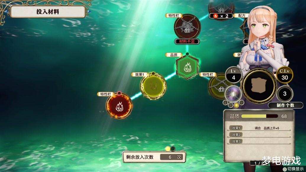 比如配方里 “特性附加” 格子空着,就会先把带有优质特性的素材投进去,再也不用担心材料浪费。